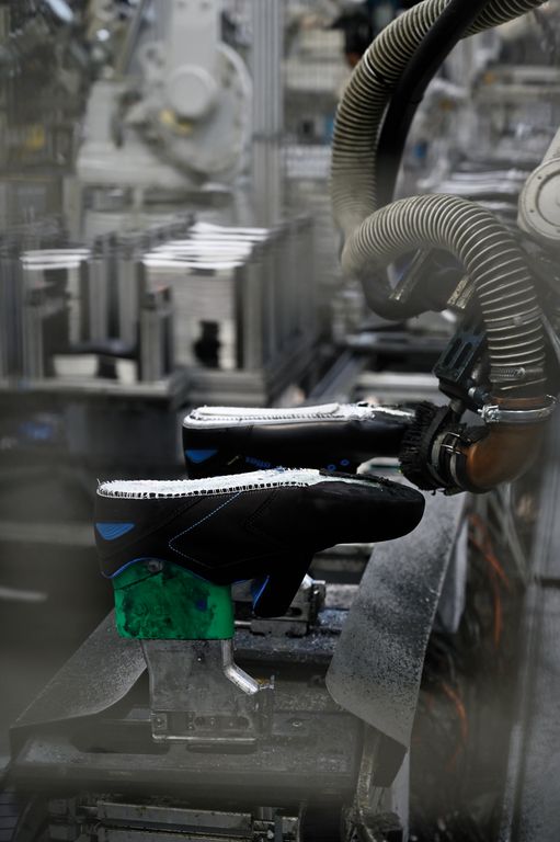 Flexibilität wird auch durch das hohe Lagervolumen am Produktionsstandort Dortmund gewährleistet: Rund 500 000 Schäfte warten auf die Endmontage, während 300 000 Paare fertig und versandbereit zur Verfügung stehen. »Eine schnelle Lieferfähigkeit ist entscheidend für uns«, erklärt der Geschäftsführer. »Großkunden bestellen die Schuhe, die gerade gebraucht werden, daher müssen wir in der Lage sein, bedarfsgerecht und tagesaktuell liefern zu können.«