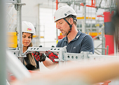Bereits frühzeitig machten sich Stefan Sentesch und sein Gerüstbauteam mit dem «Peri Up«-System vertraut: Im Weißenhorner Peri-Fortbildungszentrum wurden die entsprechenden Grundlagen in Theorie und Praxis vermittelt. Zudem begleitete der Peri-Fachberater die Gerüstmontage in Siegsdorf, um das Team bei dessen Erstanwendung kompetent vor Ort zu unterstützen. Trotz vorbereitender Gerüstplanung konnten Fragen bei der Umsetzung sofort geklärt und wertvolle Tipps vermittelt werden.