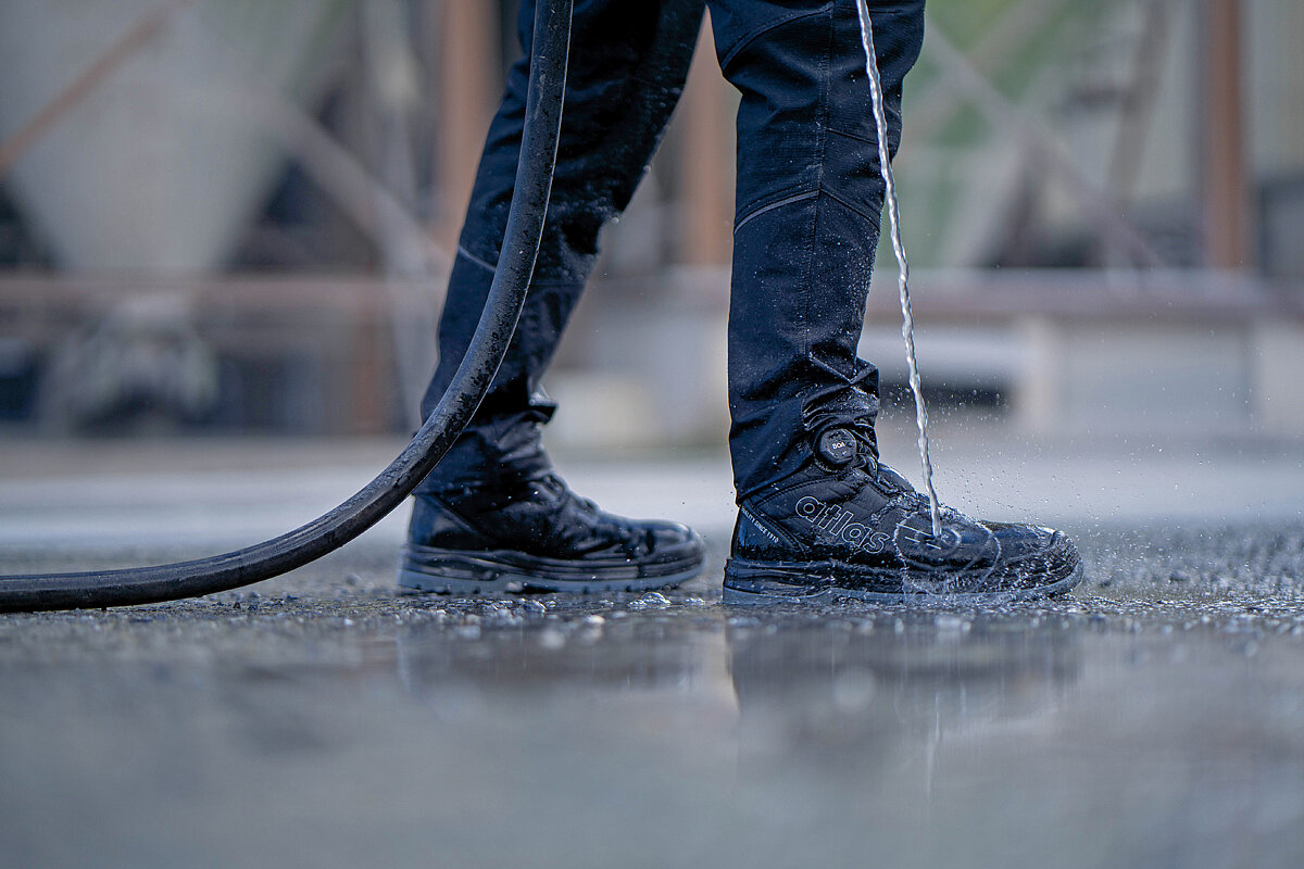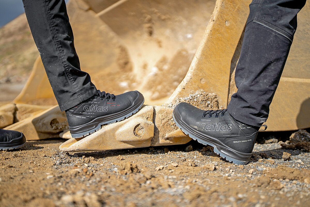 Und auch im Hinblick auf das Design weiß die neue Schuhserie zu punkten: Sowohl die knöchelhohen Stiefel als auch die Halbschuhe überzeugen im klassisch-eleganten Look. Das »ProTraX«-Obermaterial wirkt optisch wertig – nicht nur aufgrund seiner lederähnlichen Struktur, sondern auch aufgrund der schmutzresistenten Materialeigenschaften. Auf Wunsch farblich abgesetzte Einkerbungen an den Seiten wirken wie optische Verstärkungsrippen und betonen die robuste Bauweise. Abgerundet wird das Design durch das Atlas-Logo.