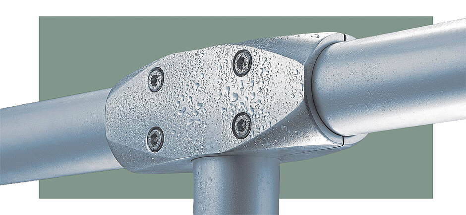 Die eloxierten Rohrverbinder von Brinck bestehen aus einer Aluminium-Legierung nach EN 573-3. Sie sind in zahlreichen verschiedenen Durchmessern sowie in ein- und zweischaliger Ausführung lieferbar. Ihre Montage erfolgt mittels korrosionsfester Senkschrauben; Schweißarbeiten fallen nicht an. Die einschalige Variante hat ein geschlossenes Design, bei der das Geländerrohr durch den Verbinder hindurchgeführt und mit den Senkschrauben fixiert wird. Bei der zweischaligen Version werden ein vorderes und ein hinteres Halbteil des Verbinders um das Rohr herum gelegt und ebenfalls mit Senkschrauben befestigt. Wegen seiner »offene« Montage erweist sich der zweischalige Verbinder von Brinck oft unter beengten Bedingungen oder bei schwer zugänglichen Stellen als vorteilhaft. Außerdem erlaubt er es, ohne eine aufwendige Demontage weitere Geländerabschnitte anzudocken.