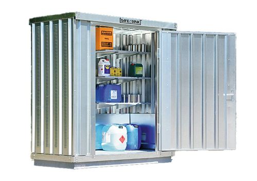 Die StawaR-geprüften Auffangwannen fangen austretende Flüssigkeiten auf und verhindern das Eindringen in Boden oder Grundwasser. Damit erfüllen sie die Anforderungen nach TRGS 510, WHG und AwSV. Passende Modelle sind auch in fahrbarer Ausführung für den mobilen Einsatz erhältlich. Auch die Lager lassen sich flexibel aufstellen und bei Bedarf problemlos versetzen – ohne aufwendige Fundamentarbeiten. So punkten die »Safe Master«-Depots mit kompakten und platzsparenden Maßen und sind darüber hinaus mit einem aufklappbaren Dach ausgestattet, das durch Gasdruckdämpfer in Position gehalten wird. Auch größere Container verfügen optional über Gasdruckdämpfer an den Türen, die ein leichtes Handling ermöglichen. Eine strukturierte Innenausstattung schafft Übersicht und Ordnung im Innenraum.
