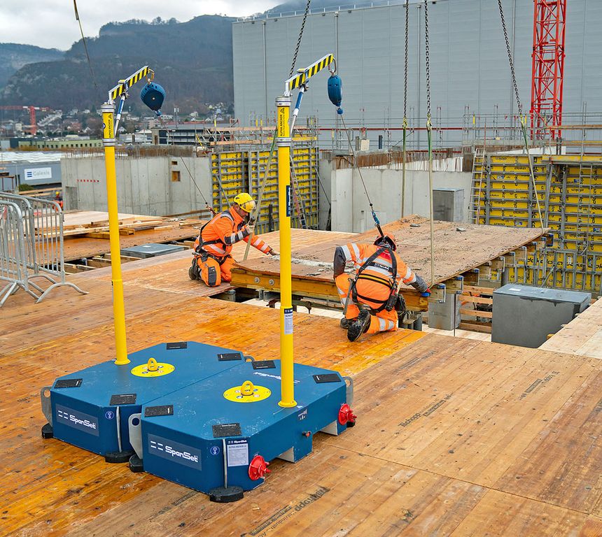 Das »Alpha Anchor«-Absturzsicherungssystem wurde nach den Bedürfnissen und Inputs der Bau- und Sicherheitsbranche auf dem SpanSet-eigenen Prüfgelände entwickelt und nach EN795:2012 Typ E sowie CEN/TS 16415:2013 Typ E zertifiziert. Es zeichnet sich durch seine Vielzahl an flexiblen und mobilen Einsatzmöglichkeiten von bis zu zwei Personen gleichzeitig aus. Alle Systemkomponenten wurden in der Schweiz geplant und gefertigt.