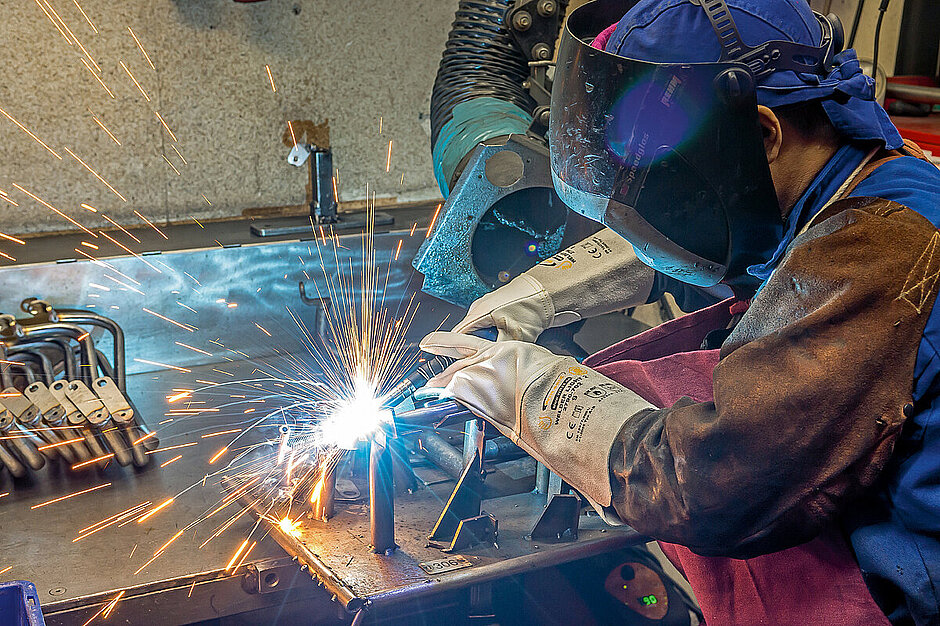 Ob in der Werkstatt, auf der Baustelle oder im industriellen Einsatz – die Handschuhe »Welder Light 1«, »Welder Light 2« und »Thermo Welder 5« bieten für unterschiedlichste Anforderungen die passende Lösung. Der »Welder Light 1« richtet sich an Anwender, die Wert auf feinfühliges Arbeiten legen: Aus hochwertigem Schafsnappaleder gefertigt, überzeugt der Handschuh durch seine weiche Haptik, eine ergonomische Passform mit Flügeldaumen sowie flammfeste Nähte aus Kevlar. Eine lange Stulpe aus Spaltleder und ein integrierter Pulsschutz erhöhen den Schutzfaktor beim Schweißen. Mit dem »Welder Light 2« bietet W+R Industry eine besonders robuste Variante für präzises Arbeiten. Das verwendete Kalbsnappaleder sorgt für Widerstandsfähigkeit, während die lange Stulpe, der Pulsschutz und der Flügeldaumen ein Plus an Sicherheit und Bewegungsfreiheit garantieren. Auch hier kommen flammfeste Nähte aus Kevlar zum Einsatz.