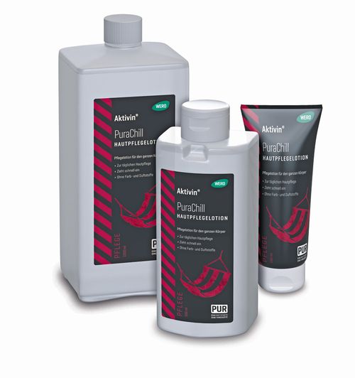 Die anschließende Hautpflege rundet den Hautschutz ab und unterstützt die Regeneration nach einem hautbelastenden Arbeitstag. Hautpflegeprodukte glätten und beruhigen die Hautoberfläche und führen der Haut Feuchtigkeit zu, ohne sie zu überfetten. Ein geeignetes Produkt ist zum Beispiel »PuraChill« von Wero. Die schnell einziehende Pflegelotion enthält laut Herstellerangaben keine Duft- und Farbstoffe und ist für alle Hauttypen geeignet. w
